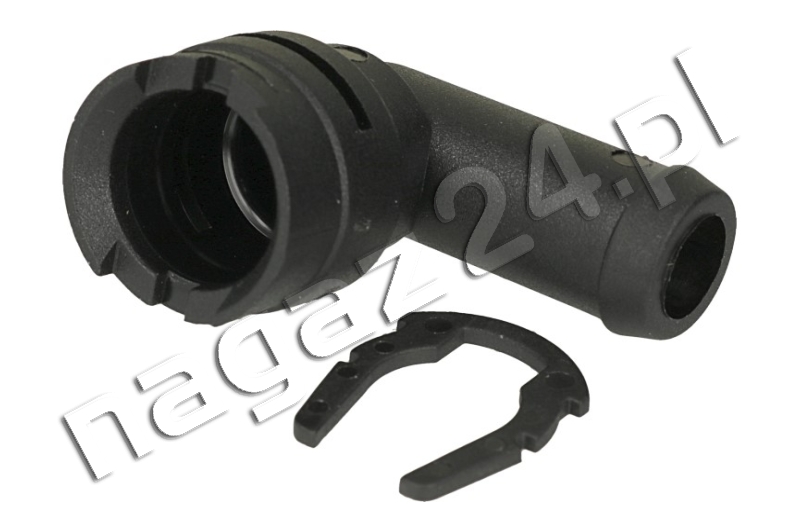 Adapter, kolano wtryskiwacza gazowego RAZOR – mocowany do wtryskiwacza za pomocą plastikowego pierścienia osadczego (seegera).