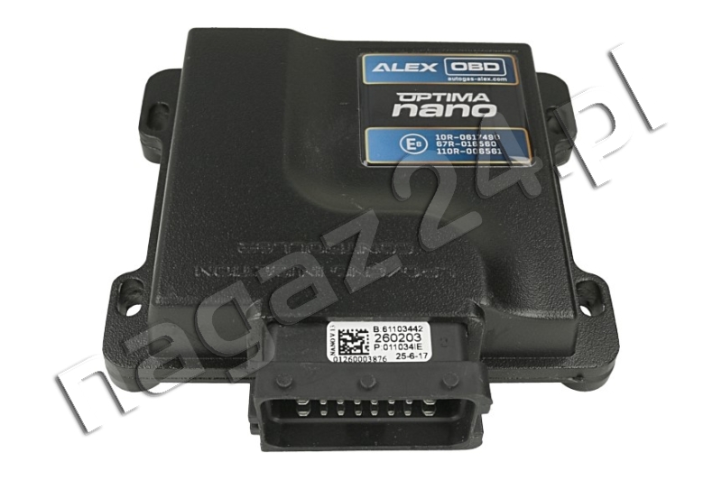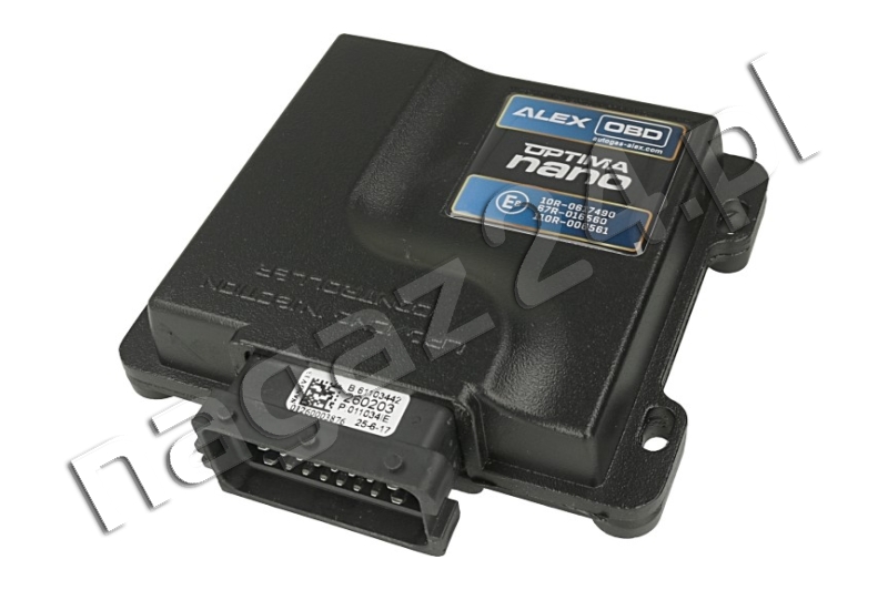 Centrala - sterownik instalacji gazowej ALEX Optima NANO OBD 4 cyl. – sterownik Optima NANO OBD firmy ALEX z Białegostoku z wbudowanym modułem obsługi OBD znajdujący zastosowanie w samochodowych instalacjach gazowych IV generacji (sekwencyjnych wtryskach gazu w fazie lotnej) przeznaczonych do konwersji na zasilanie LPG samochodów wyposażonych 3- lub 4-cylindrowe jednostki napędowe z pośrednim wtryskiem benzyny.
