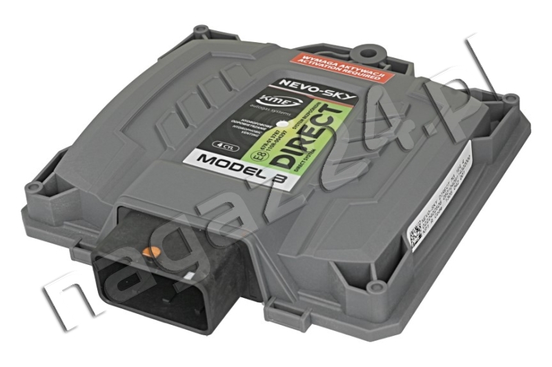 Centrala, sterownik KME NEVO-SKY DIRECT 4 CYL. Model 3 aktiv – na podstawie m. in. czasów wtrysku z wtryskiwaczy benzynowych, sterownik KME NEVO-SKY DIRECT Model 3 dobiera odpowiednią dawkę gazu, wtryskiwaną za pomocą pojedynczych wtryskiwaczy LPG dawkujących paliwo gazowe do kanałów dolotowych poszczególnych cylindrów silnika oraz okresowo uruchamia wtryskiwacze benzynowe realizując niewielki (nie wpływający na ekonomikę użytkowania auta na LPG) dotrysk benzyny. Chroni on wtryskiwacze benzynowe przed uszkodzeniem, zapewniając chłodzenie i usuwanie zanieczyszczeń z ich końcówek znajdujących się w komorach spalania.