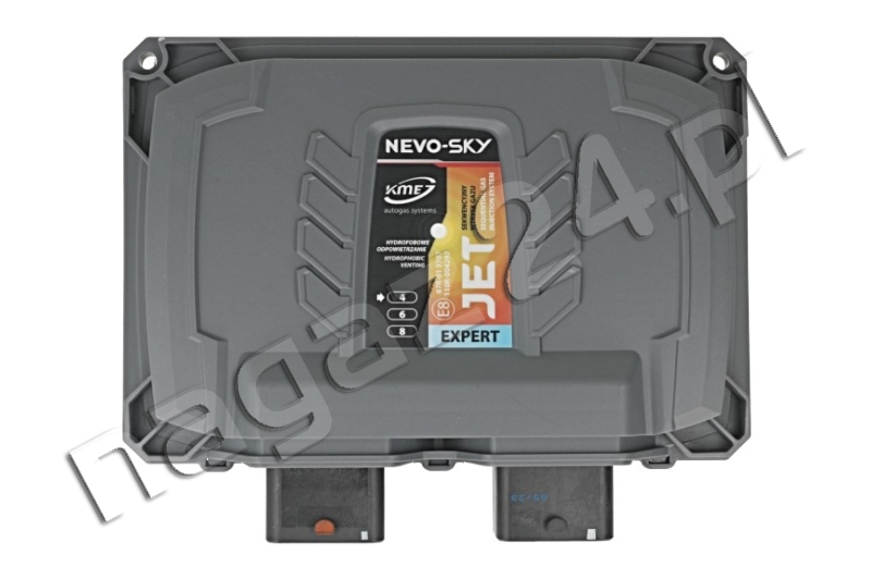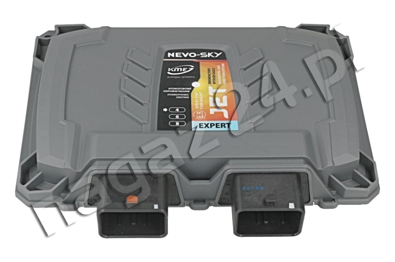 Centrala, sterownik KME NEVO-SKY JET EXPERT 4 CYL – sterownik NEVO-SKY JET EXPERT 4 CYL łódzkiej firmy KME samochodowej instalacji gazowej IV generacji (sekwencyjnego wtrysku gazu w fazie lotnej) przeznaczonej do konwersji na zasilanie LPG samochodów z 3- i 4-cylindrowymi silnikami z pośrednim wtryskiem benzyny.