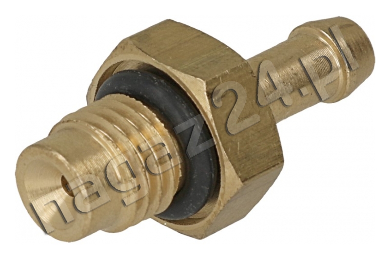 Mosiężny lub aluminiowy króciec wyjścia gazu z listwy wtryskowej Dragon z oringiem uszczelniającym. Średnica zewnętrzna 4,5 milimetra, otwór kalibracyjny o średnicy 1,5 milimetra, pod klucz rozmiar 12.