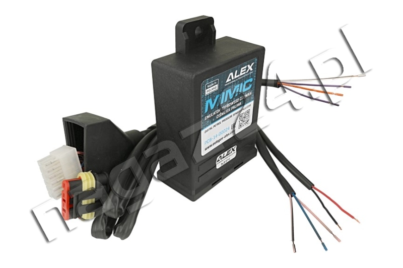 Emulator cyfrowego czujnika ciśnienia benzyny ALEX MIMIC V.1.0 REV.2 – urządzenie zamienia cyfrowy sygnał pochodzący z czujnika ciśnienia benzyny na sygnał analogowy (napięciowy), który jest w stanie odczytać ("zrozumieć") sterownik gazowego układu zasilania.