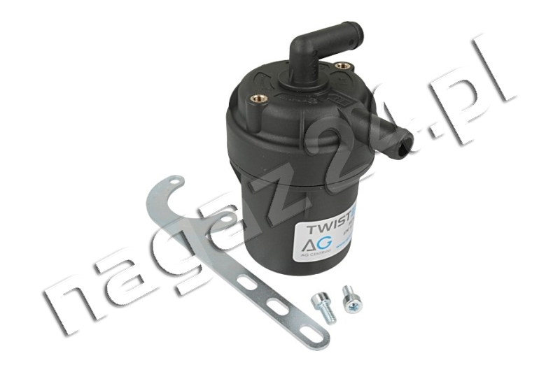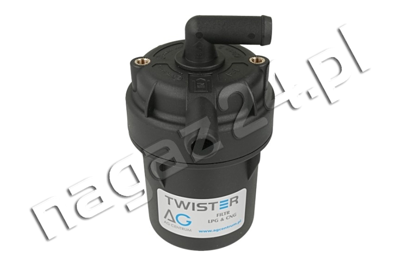 Filtr fazy lotnej LPG AG Centrum Twister 360 12/12 obrotowe – odstojnikowy filtr fazy lotnej LPG stosowany w samochodowych instalacjach gazowych IV generacji, sekwencyjnych wtryskach gazu w fazie lotnej.