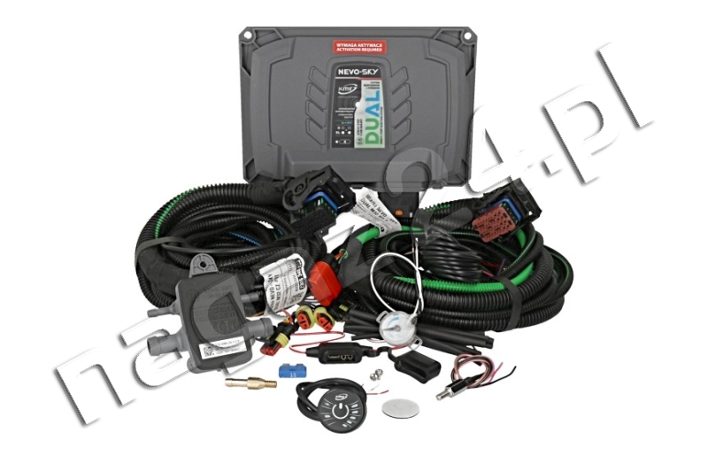 KME NEVO-SKY DUAL 4 cyl. DIRECT (DI + MPI) RL elektronika DG7 activ – zestaw elektroniki samochodowej instalacji gazowej IV generacji KME NEVO-SKY DUAL łódzkiej firmy KME do silników z dualnym, podwójnym (bezpośrednim i pośrednim) wtryskiem benzyny.