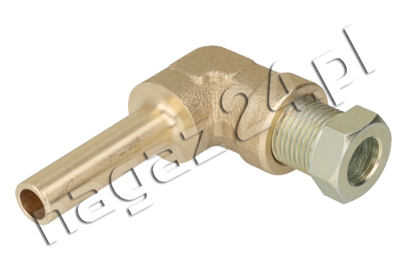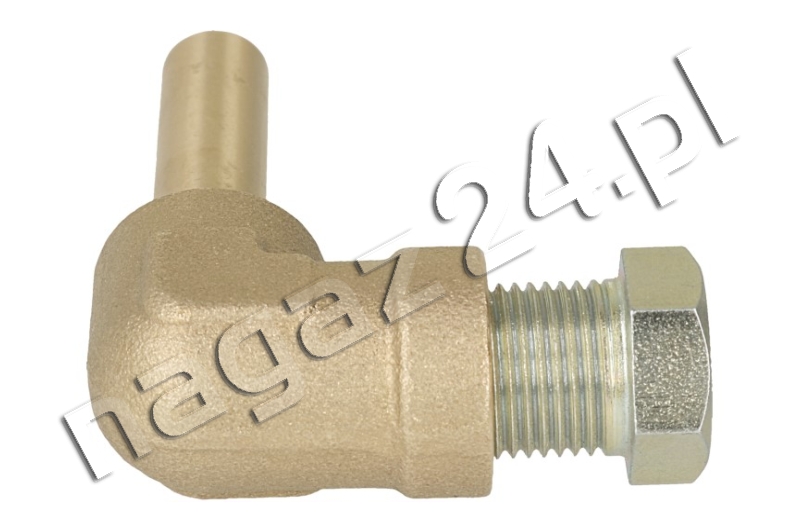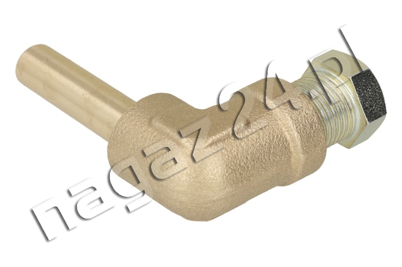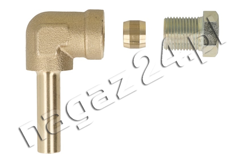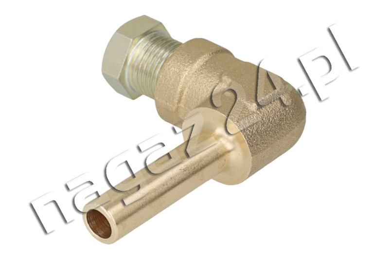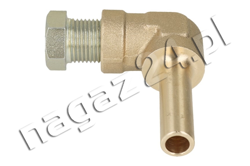 Kolano wielozaworu uniwersalne fi8 (M12x1) – rurka fi8 – pozwala na zmianę kierunku złącza rurki miedzianej o średnicy 8 mm (ze śrubą dociskową M12x1) pod kątem prostym, co bywa bardzo pomocne przy podłączaniu sztywnych przewodów miedzianych do wielozaworów w samochodowych zbiornikach LPG, szczególnie toroidalnych.