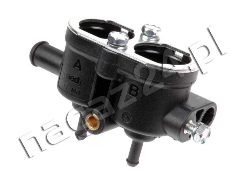 Korpus, obudowa listwy wtryskiwaczy gazowych MED RGI plastikowa 2 cylindry pod czujnik – obudowa listwy wtryskiwaczy gazowych jest częścią zamienną do 2-sekcyjnej listwy wtryskowej MED, znajdującej zastosowanie w samochodowych instalacjach gazowych IV generacji (sekwencyjnych wtryskach gazu w fazie lotnej) firmy Landi Renzo. Takie listwy (2-sekcyjne) mogą być stosowane do konwersji na zasilanie LPG np. w samochodach z silnikami 4-cylindrowymi przeciwsobnymi (typu bokser) i 5-cylindrowymi.