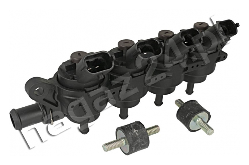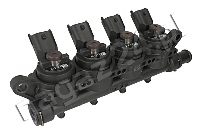 Listwa wtryskiwaczy gazowych LANDI RENZO GIRS12 4-cylindrowa XXS brązowa do 10 kW – 4-sekcyjna listwa wtryskiwaczy gazowych Girs12 firmy Landi Renzo znajdująca zastosowanie w samochodowych instalacjach gazowych IV generacji (sekwencyjnych wtryskach gazu w fazie lotnej), w których jest ona elementem wykonawczym odpowiedzialnym za dawkowanie, obliczonych przez sterownik, porcji paliwa gazowego do kanałów dolotowych silnika dostosowanego do zasilania paliwem gazowym (LPG lub CNG).