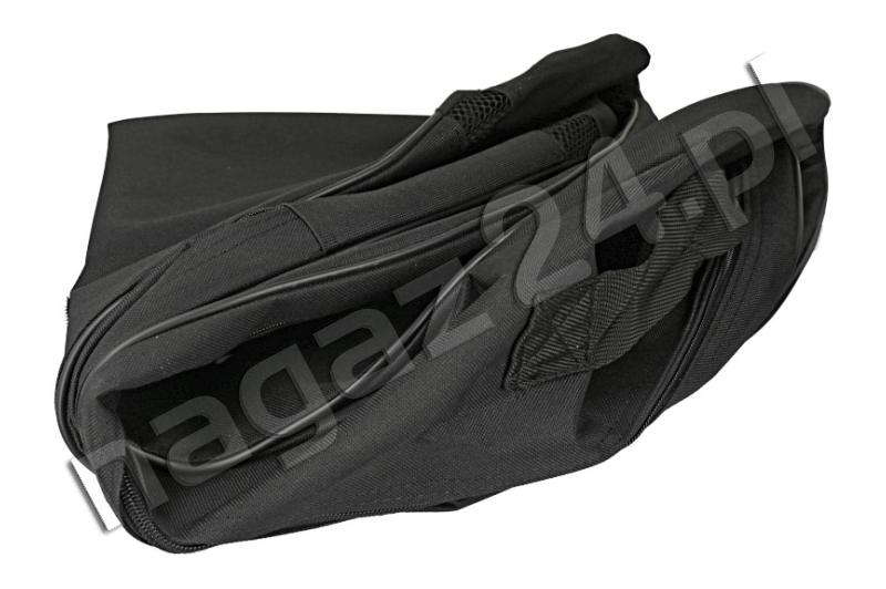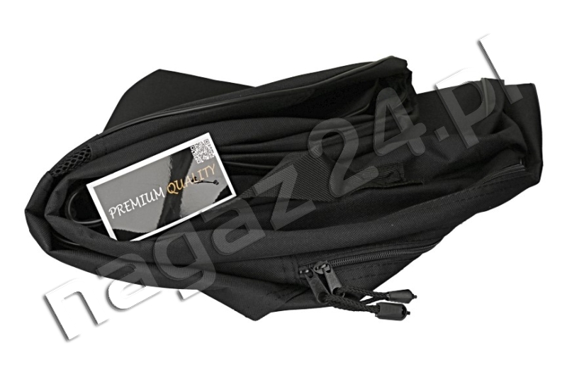 Wykonany z gumowanej tkaniny o wysokiej wytrzymałości, z uchwytem do przenoszenia i dwoma rzepami od spodniej strony pokrowca.