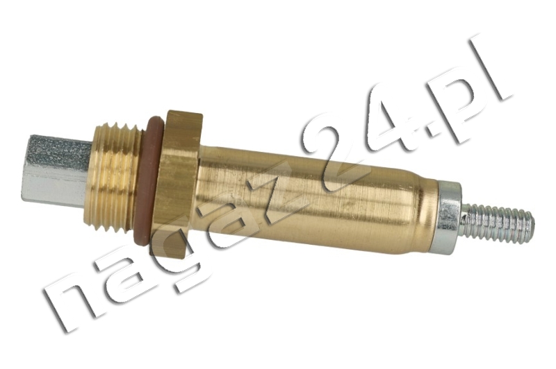 Trzpień z tłoczkiem elektrozaworu gazowego VALTEK Type 03 – część zamienna do elektrozaworów gazowych VALTEK Type 03. Poruszający się w trzpieniu tłoczek otwiera i zamyka przepływ LPG w fazie ciekłej z części wysokociśnieniowej samochodowych instalacji gazowych do reduktora-parownika. W pozycji zamkniętej elektrozaworu gazowego tłoczek utrzymuje sprężyna. Natomiast otwarcie przepływu fazy ciekłej LPG wymaga uniesienia tłoczka, co następuje z udziałem siły powstającej na skutek działania pola elektromagnetycznego cewki pracującej na trzpieniu.