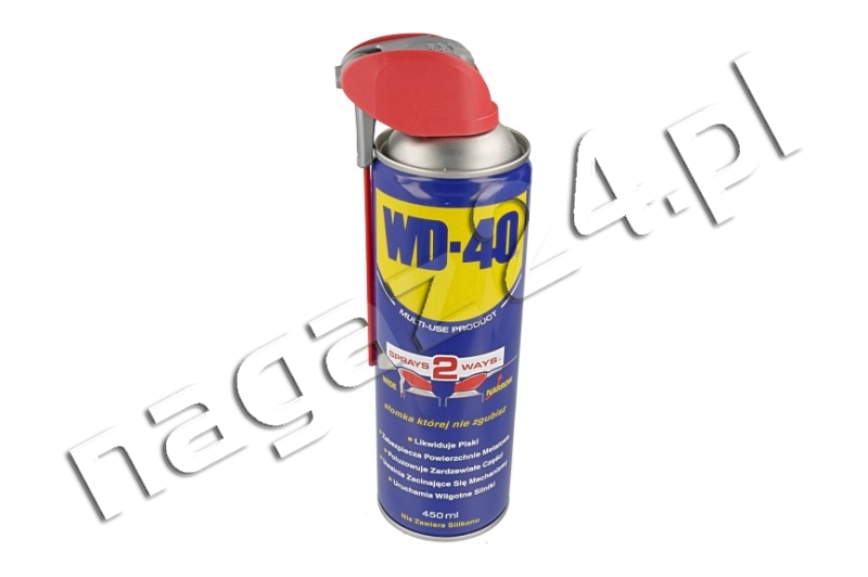 WD-40 uniwersalny olej penetrujący 450 ml – preparat wielofunkcyjny o ogromnym zakresie zastosowań, o działaniu smarującym, czyszczącym i zapobiegającym korozji oraz wypierającym wodę, o dużej zdolności do penetrowania szczelin, dzięki czemu możliwe jest rozluźnianie różnego rodzaju zapieczonych połączeń np. gwintowych.