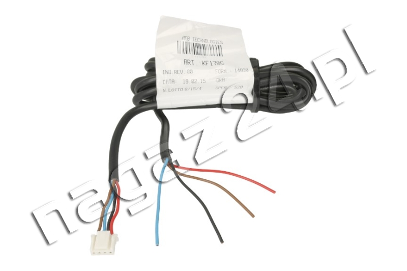 Cztero-przewodowa wiązka (czerwony, czarny, niebieski, biały) z jednej strony zakończona białą jednorzędową kostką przyłączeniową do przełącznika, z drugiej strony przewody do lutowania.